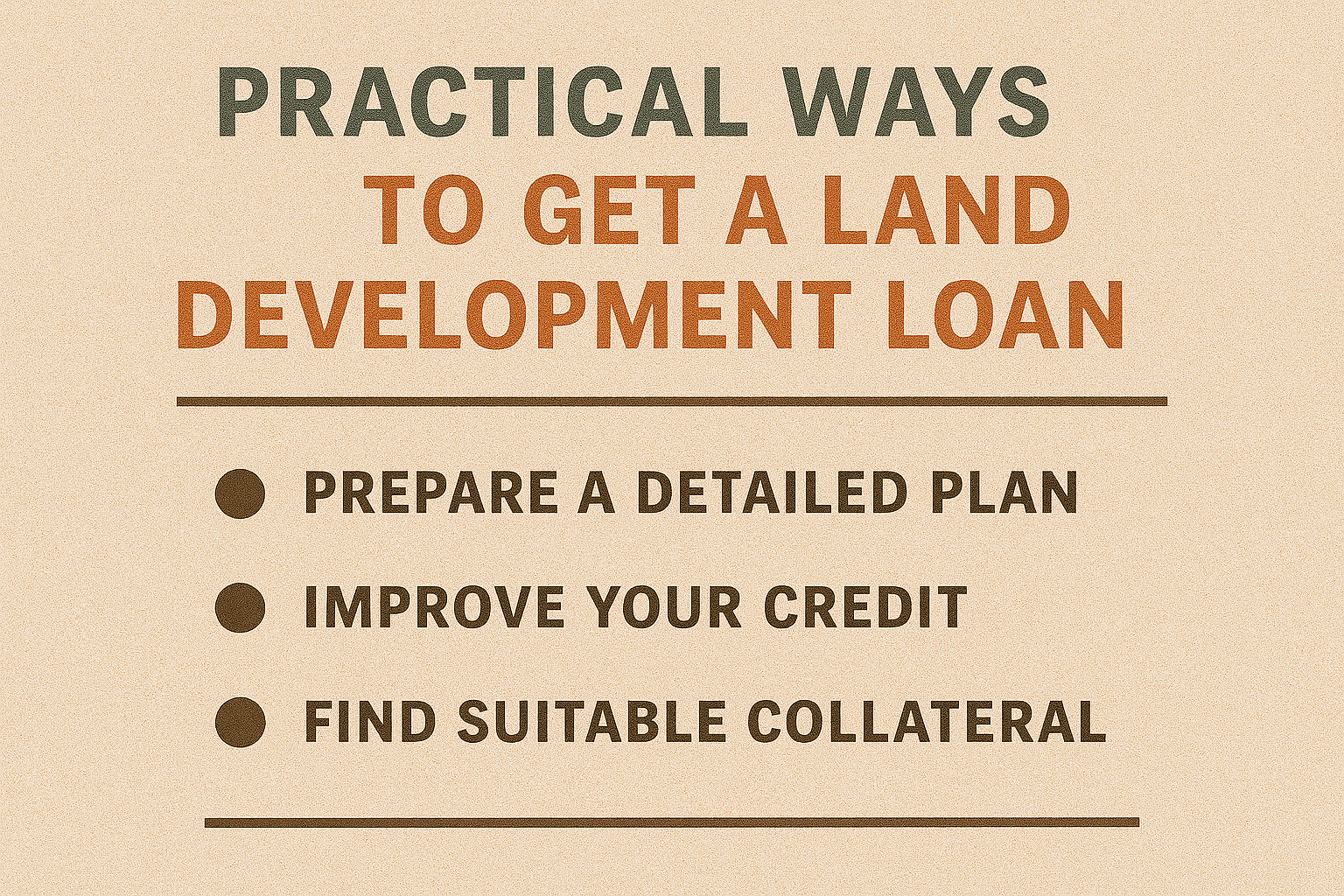 토지 개발을 계획할 때 가장 먼저 부딪히는 현실적인 벽은 ‘자금’입니다. 땅을 사는 데만 수천만 원, 많게는 수억 원이 들고, 여기에 기반 공사, 진입로 확보, 인허가 비용까지 고려하면 초기 투자 비용은 만만치 않습니다. 하지만 당장 자금이 부족하다고 포기할 필요는 없습니다. 정부 정책자금과 금융기관의 토지 개발 자금 대출 제도를 현명하게 활용한다면, 현실적으로 개발 프로젝트를 진행할 수 있습니다.이 글에서는 토지 개발을 위한 현실적인 자금 융자 방법에 대해, 정부지원 자금, 금융기관 대출, 그리고 사전 준비사항까지 총체적으로 안내합니다.왜 토지 개발 자금 대출이 필요한가?토지는 단순 보유만으로는 수익을 내기 어렵습니다. 가치를 높이려면 결국 개발이 필요합니다. 진입로가 없는 맹지를 도로와 연결하거나, ..